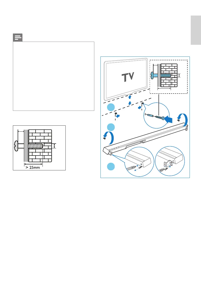 Soundbar, make sure that you use screws of a suitable