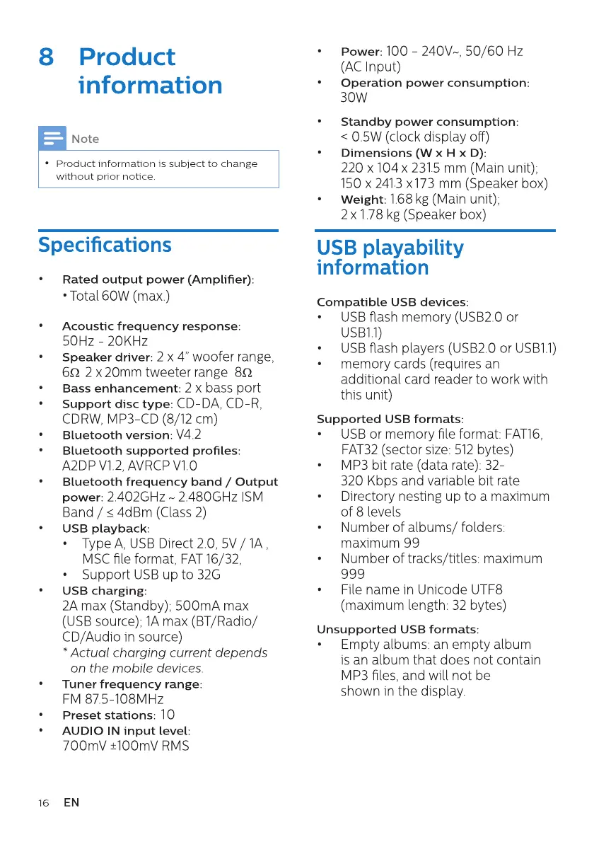 (USB source); IA max (BT/Radio/