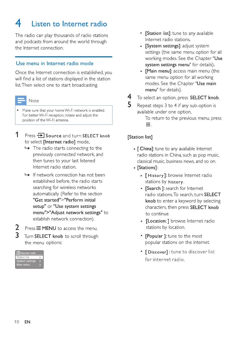 Philips TAM8905 - Internet Radio Operations; Use Menu in Internet Radio Mode