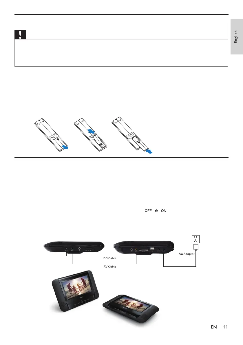 Risk of product damage! When the remote control is not used for long periods, remove the batteries.
