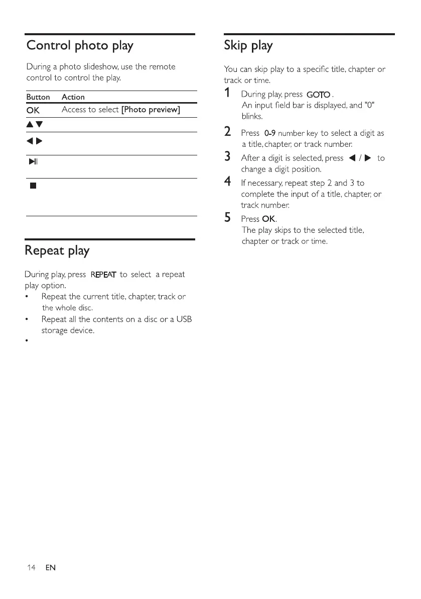 To cancel repeat play, press and hold