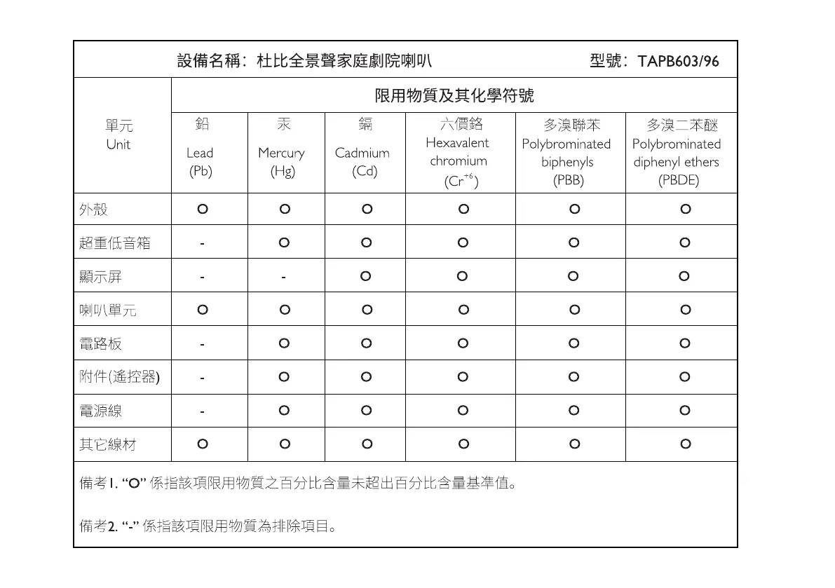 Philips TAPB603 - Product Compliance and Specifications; Restricted Substances Information