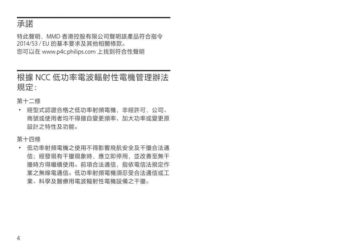 Philips TAPB603 - Commitment and Regulations; EU Declaration of Conformity; Taiwan NCC Regulations