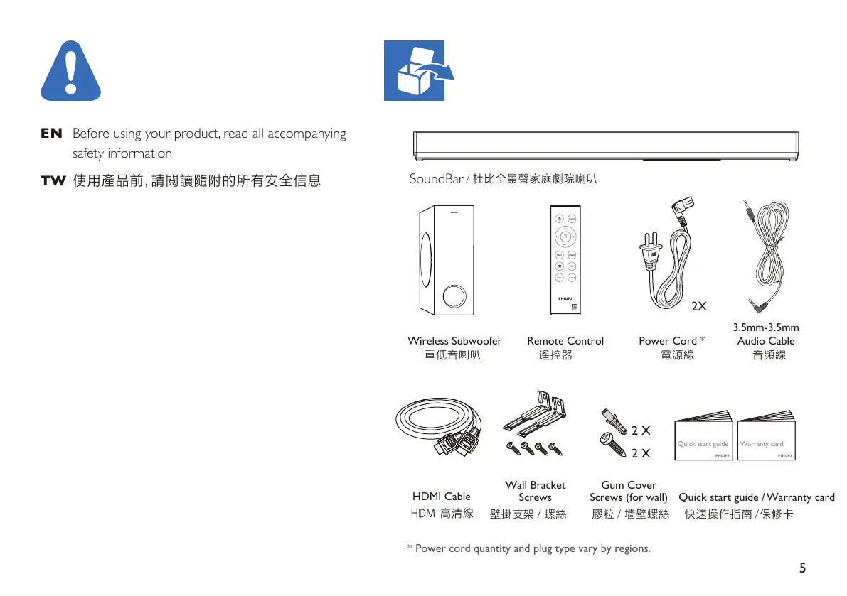 I 壁掛支 / 螺絲 膠粒 / 墻壁螺絲 快速操作指南 / 保修卡