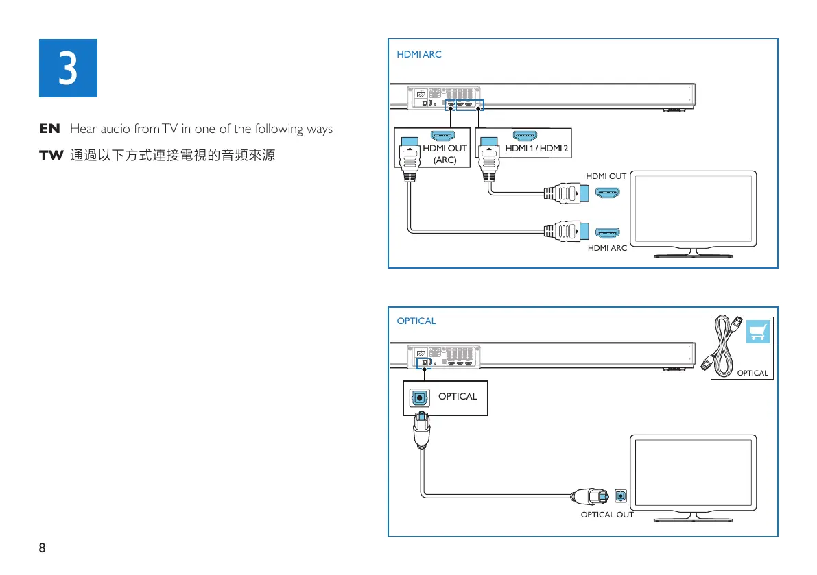 Philips TAPB603 - TV Audio Connection and Source Selection; TV Audio Connection Methods