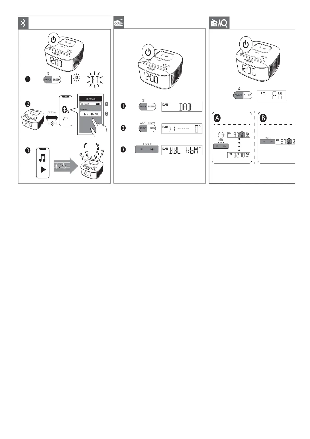 Philips TAR7705 - Wireless and Radio Functions; Bluetooth Connectivity and Pairing; DAB+ Radio Tuning