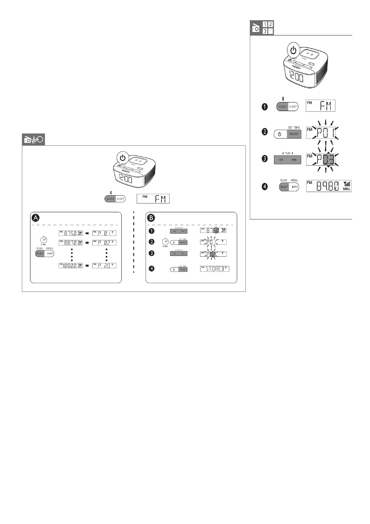 Philips TAR7705 - FM Radio Operations; Tuning and Scanning FM Stations; Storing and Recalling FM Presets