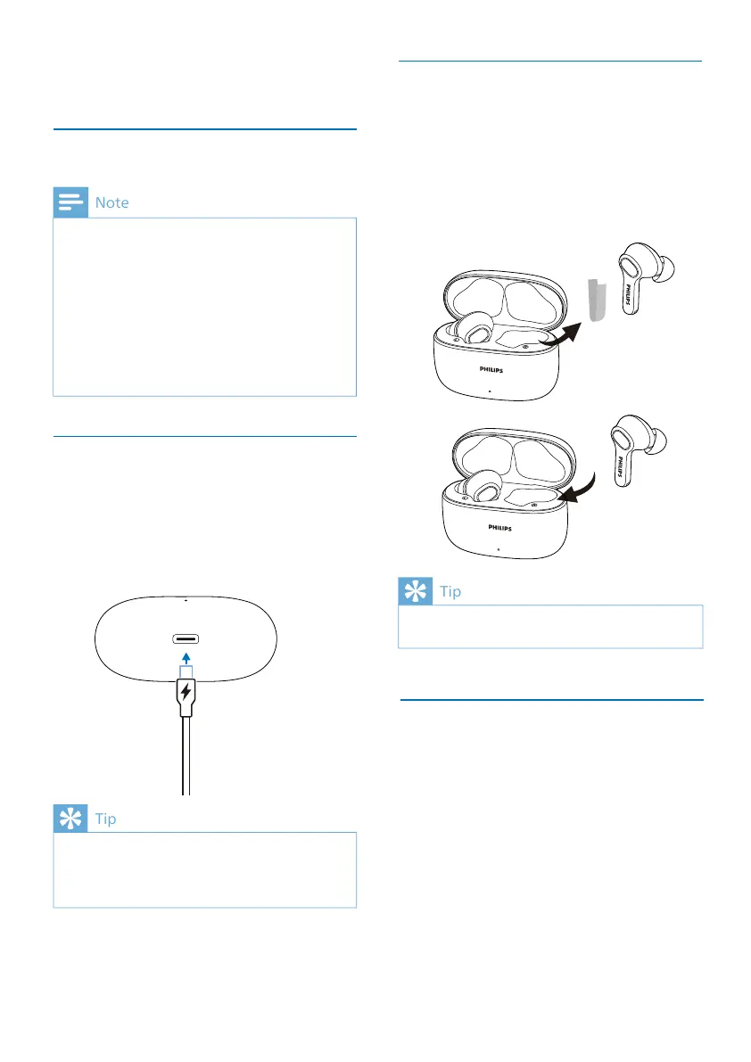 • The earpieces start charging and the
