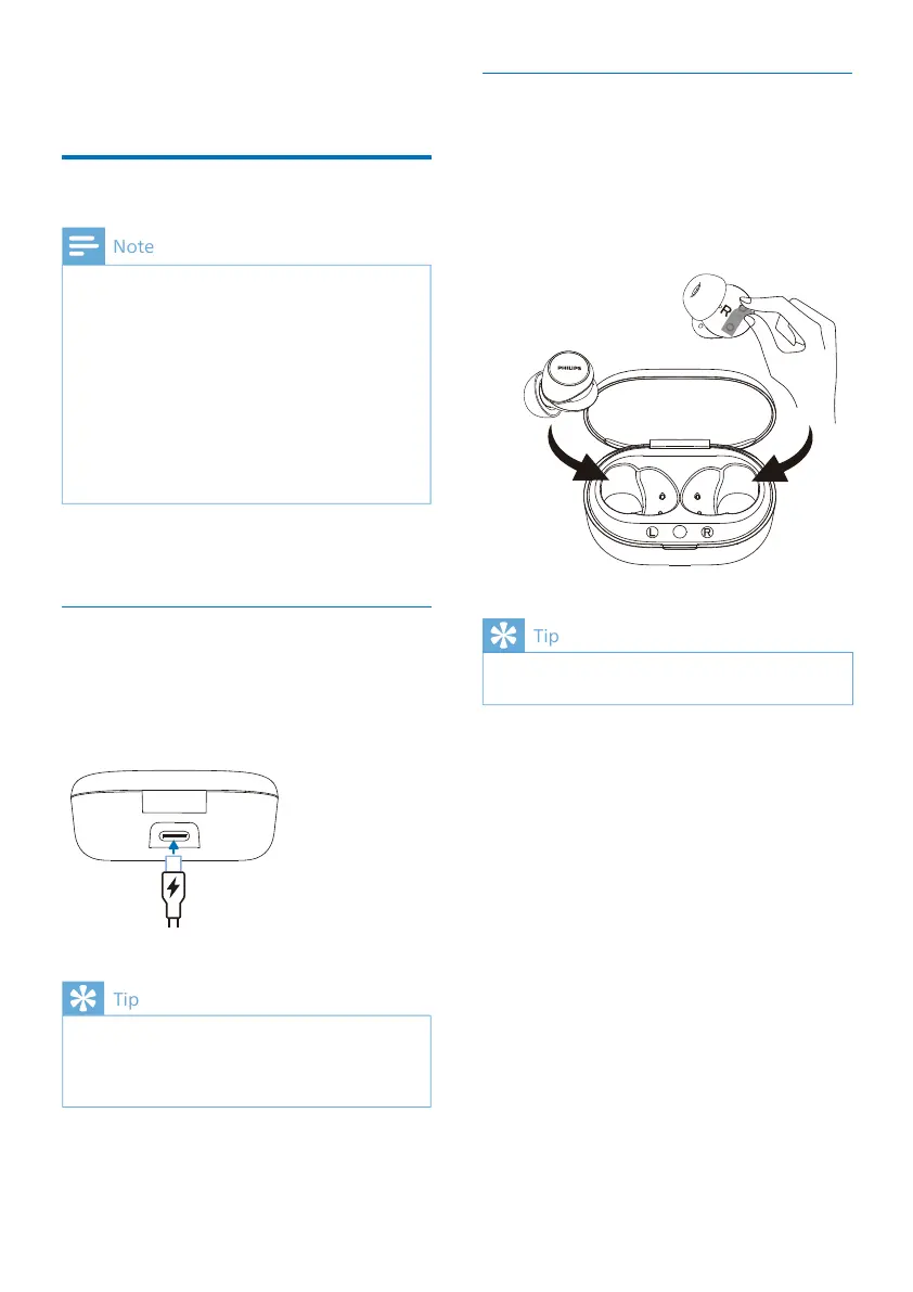• The earpieces start charging and the