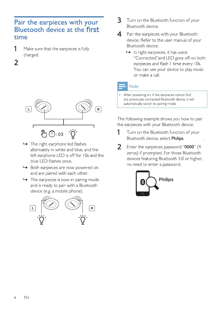 Philips TAT1235 - Pair the earpieces with your Bluetooth device at the first time