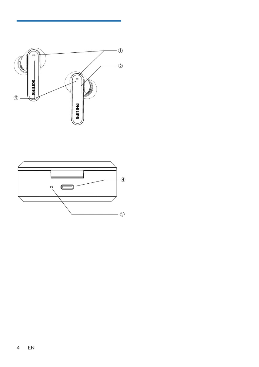 Philips TAT4506 - Overview of Earpiece Components; Earpiece Identification; Charging Box Identification