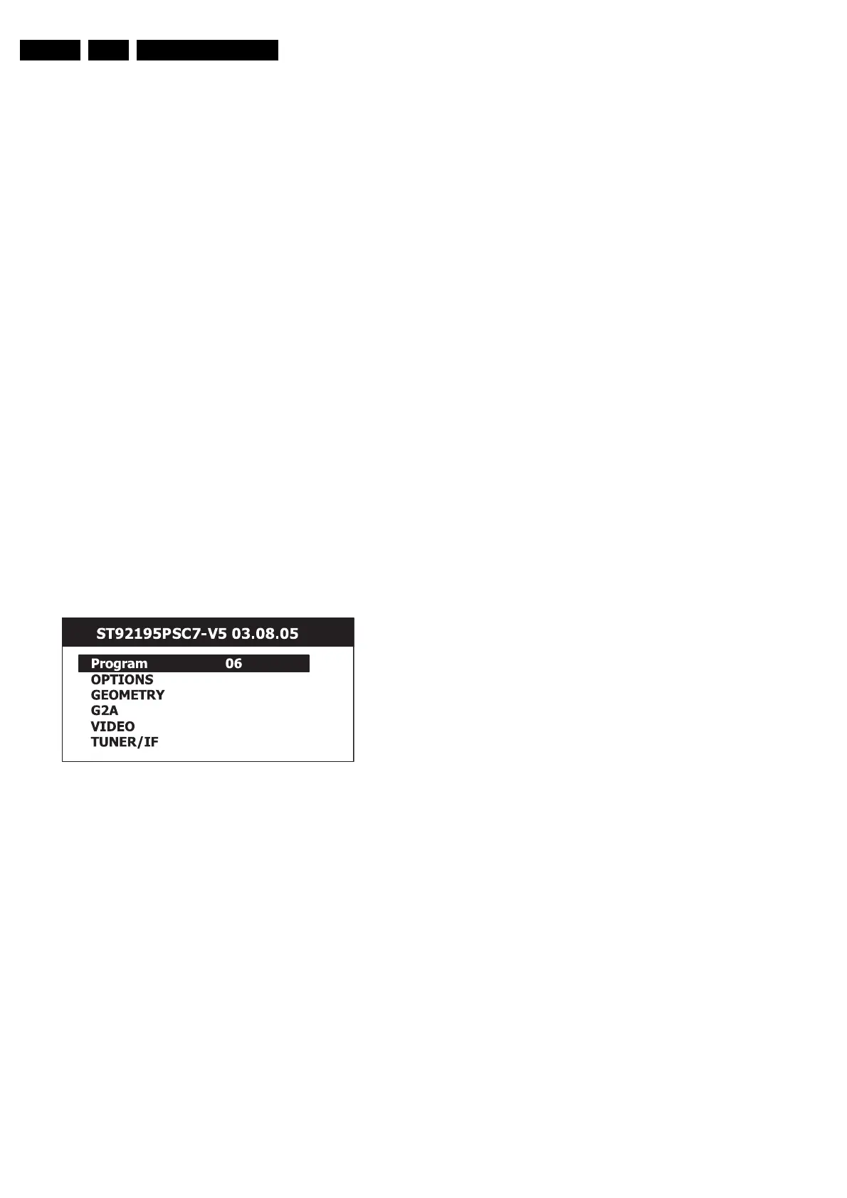 Screen menu's must be 'off', when you enter the Service Mode.