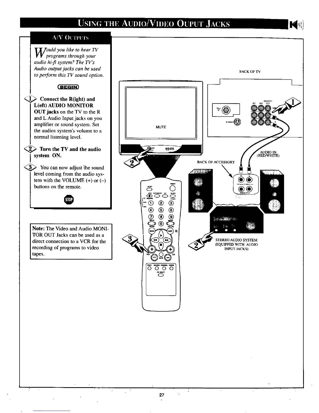 OUT jacks on the TV to the R