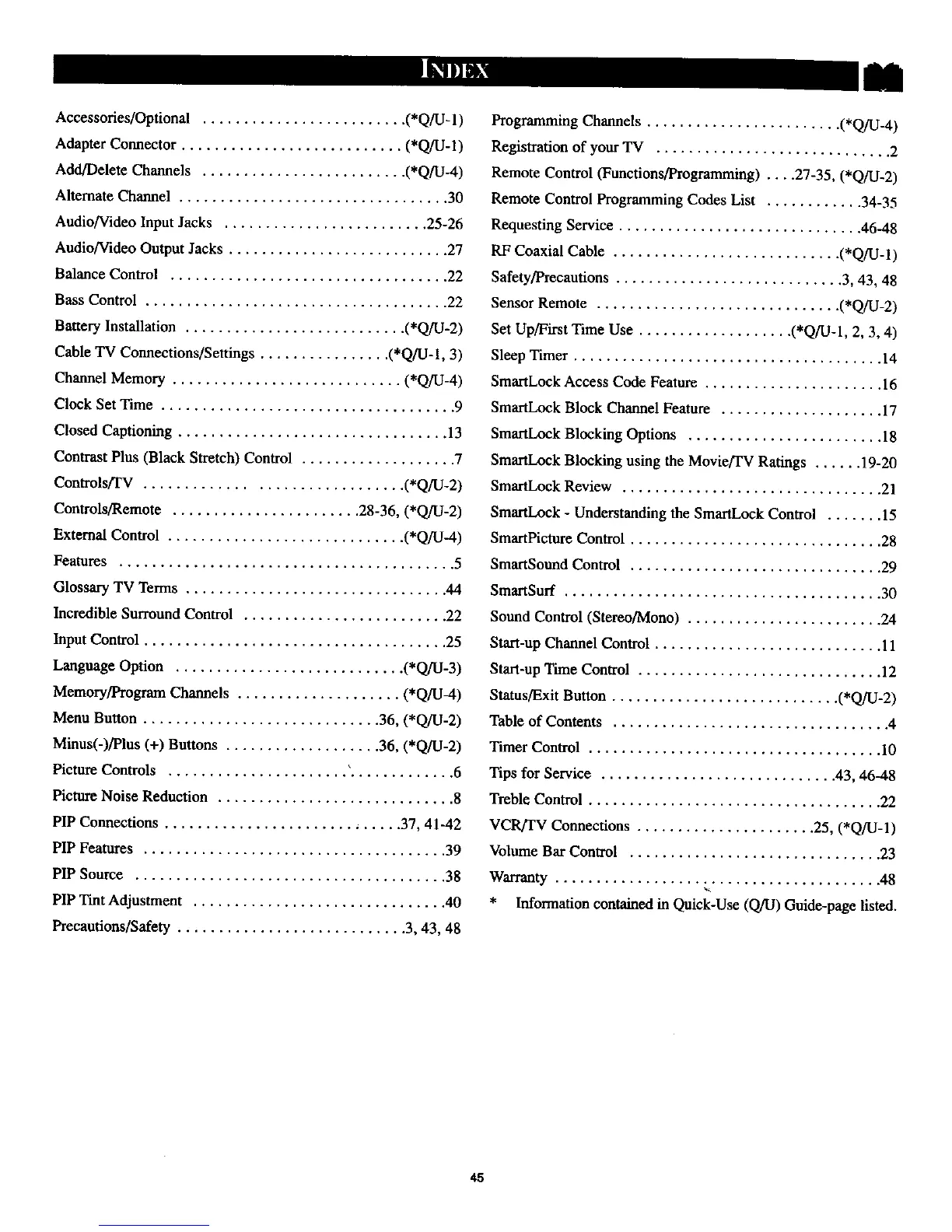 Remote Control (Functions/Programming) .... 27-35, (*Q/U-2)