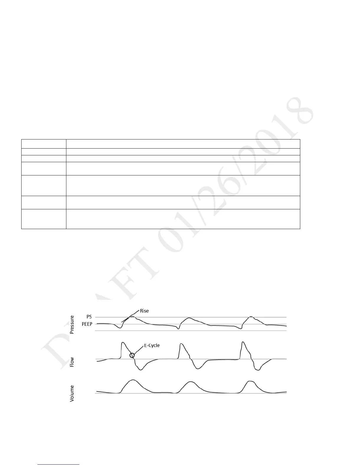 In the PSV mode, the ventilator delivers spontaneous, pressure-supported, breaths and user-initiated mandatory breaths. The ventilator functions