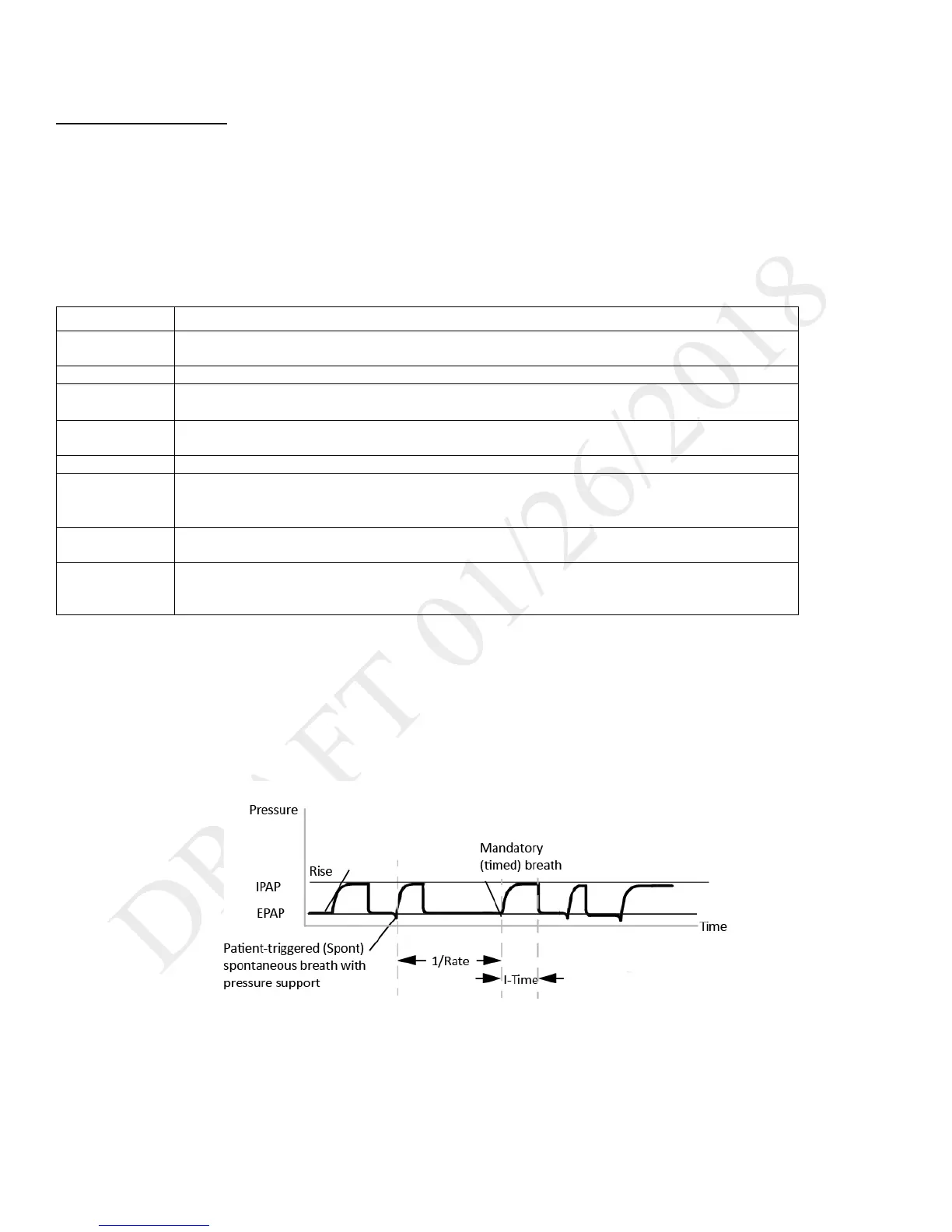 patient effort. The duration of a mandatory breath is determined by the inspiratory time setting. Remember that the IPAP setting is the maximum