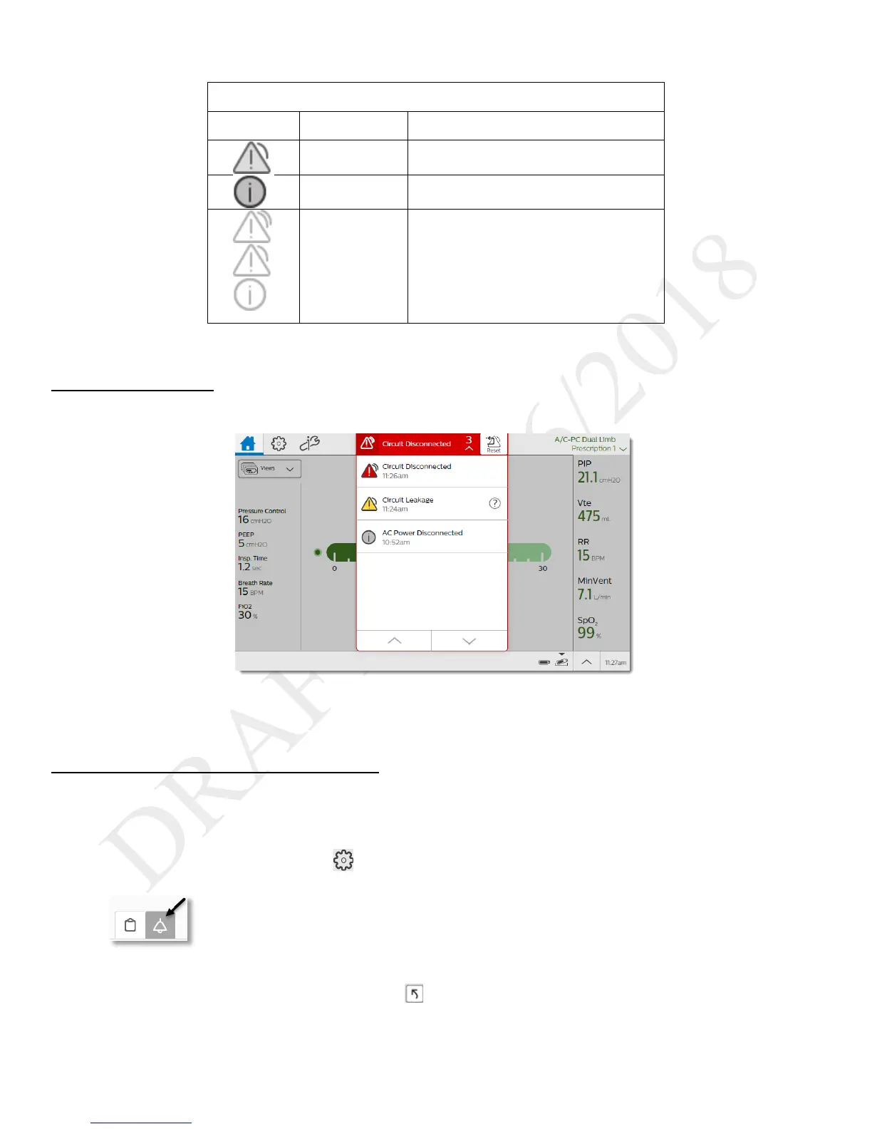 The Alarm List appears in the menu bar. Tap the list to expand it and view the alarms. Tap the up and down arrows to navigate through the list.