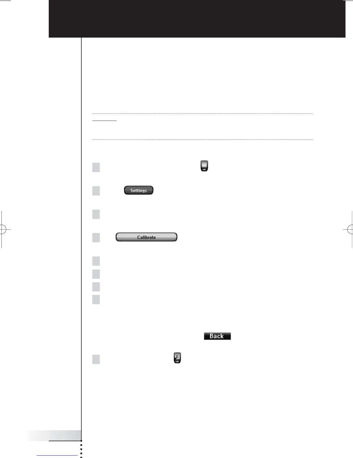 the touch screen. Calibration is necessary when you notice that tapping a button
