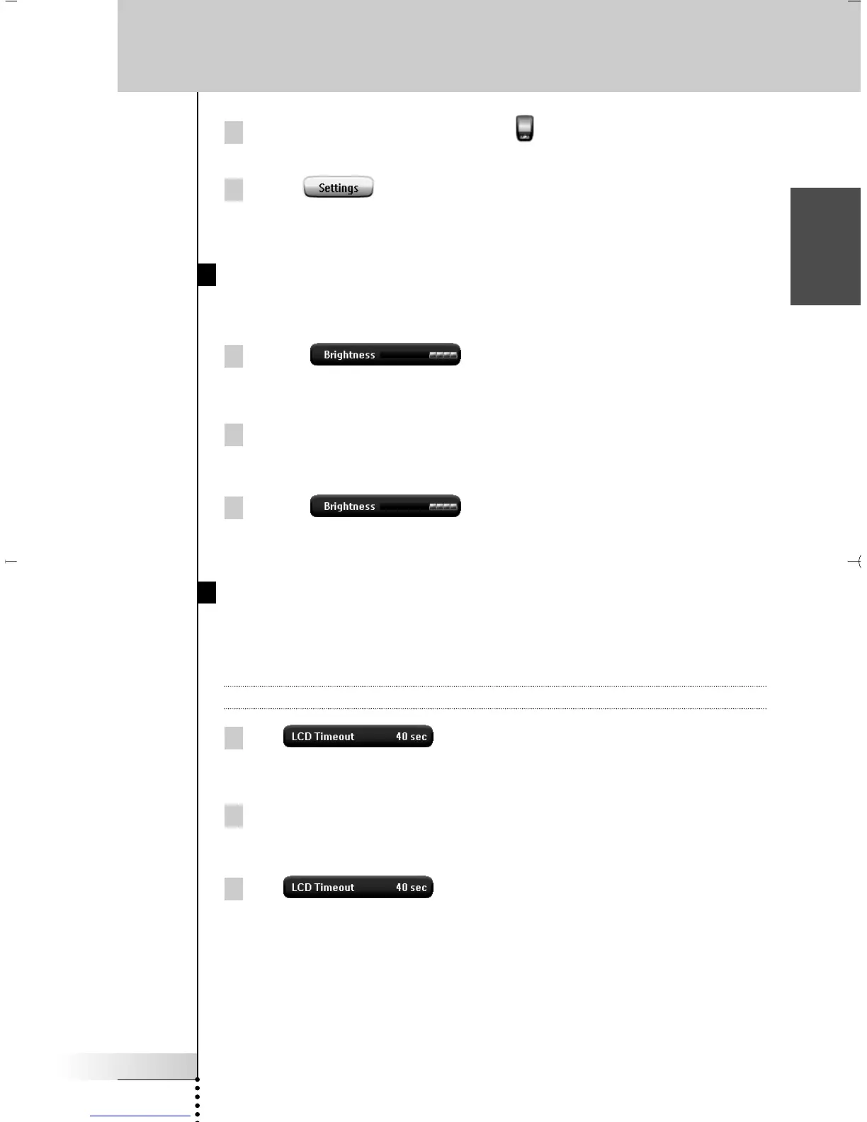 The LCD Timeout button is selected. The ‘+’ and ‘-’ labels appear on the two