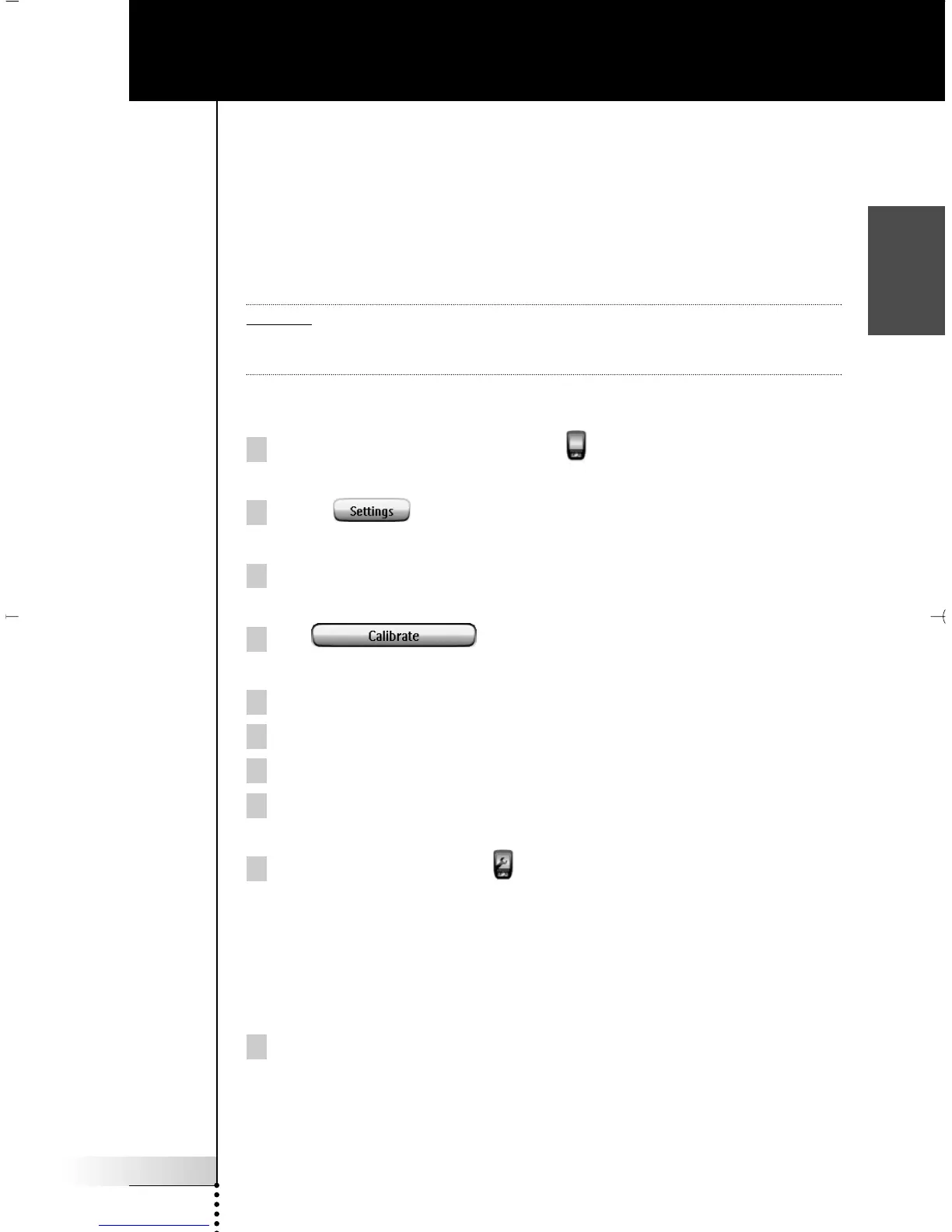 the touch screen. Calibration is necessary when you notice that tapping a button