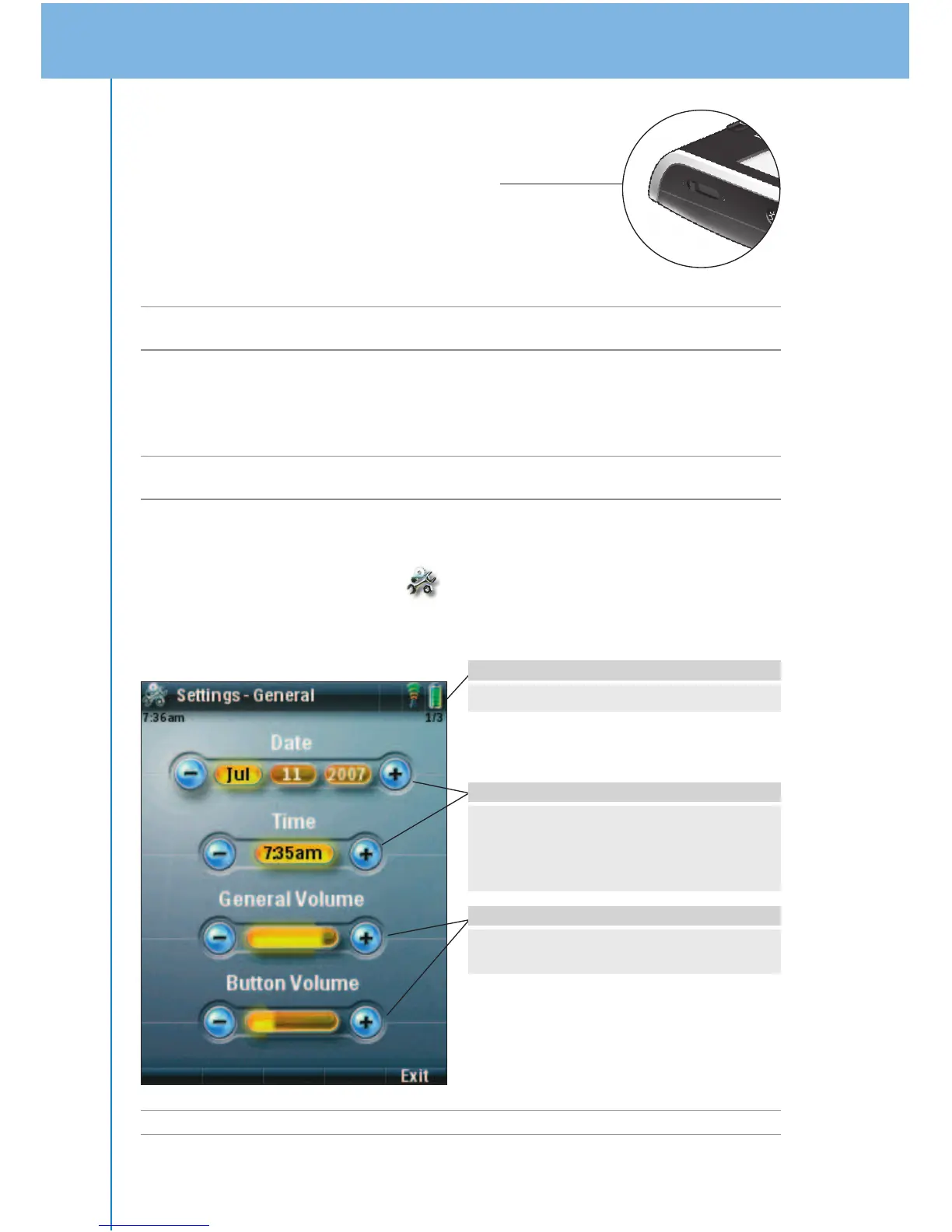Tip Press and hold the "–" and "+" buttons to decrease or increase the settings more quickly.