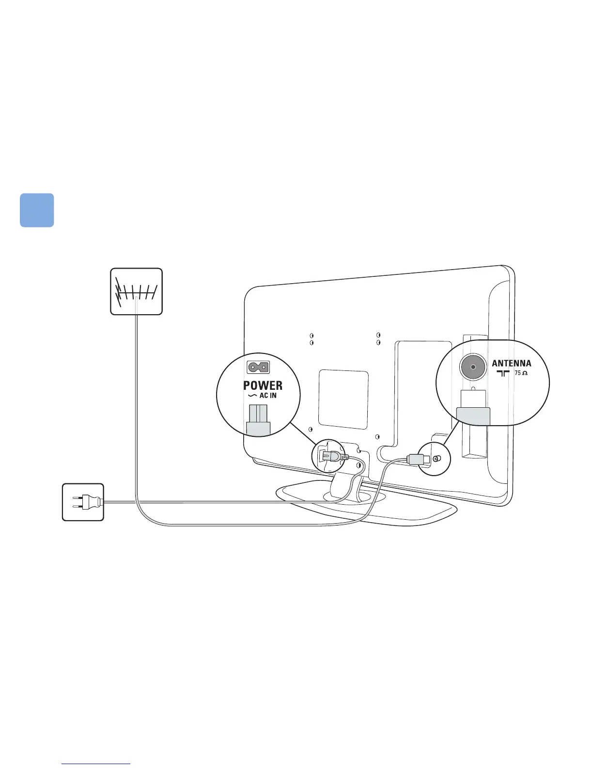 Philips TV - Connecting External Devices; Connecting the Antenna Cable; Connecting the Satellite Dish