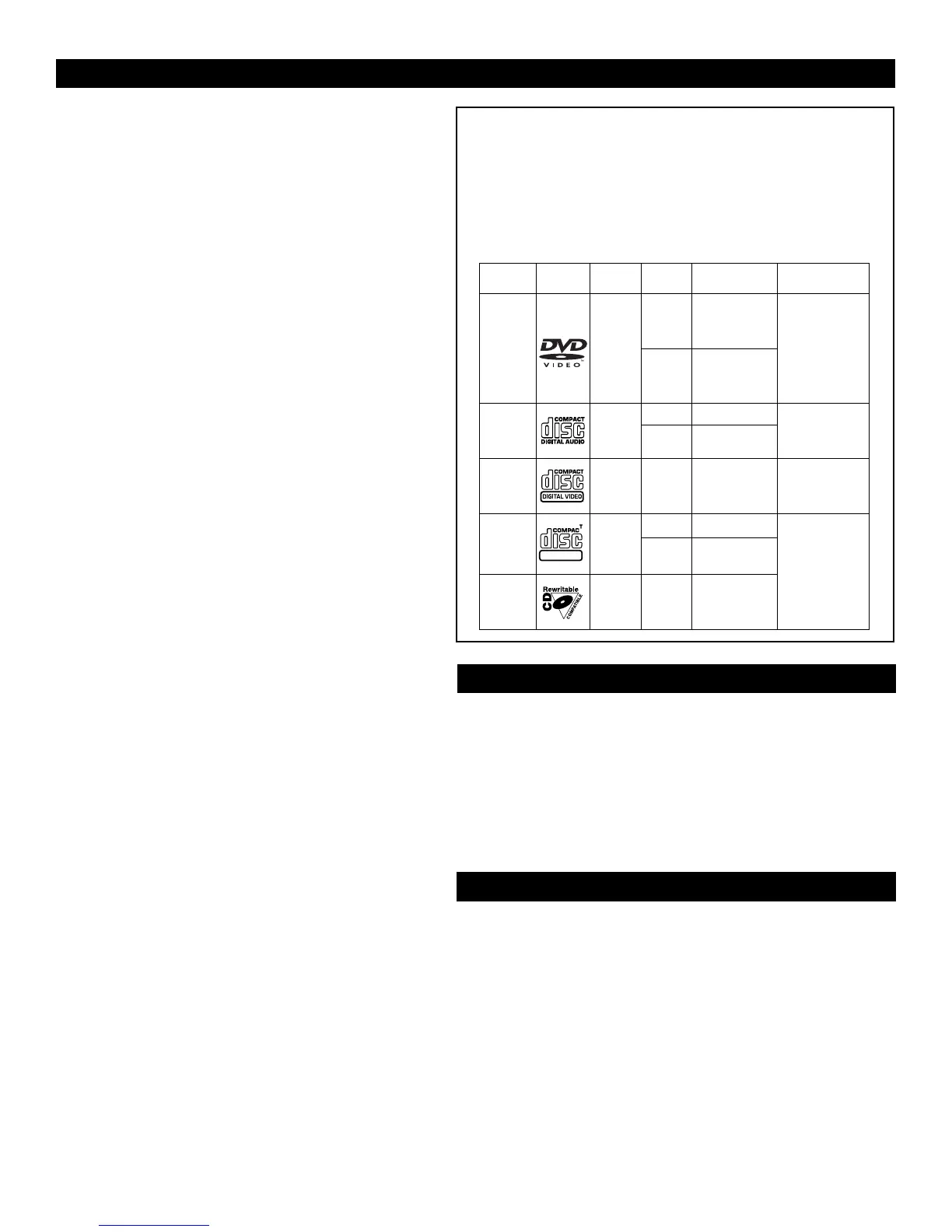 CDs, CD-Rs and CD-RW discs. In order to play a DVD or Audio