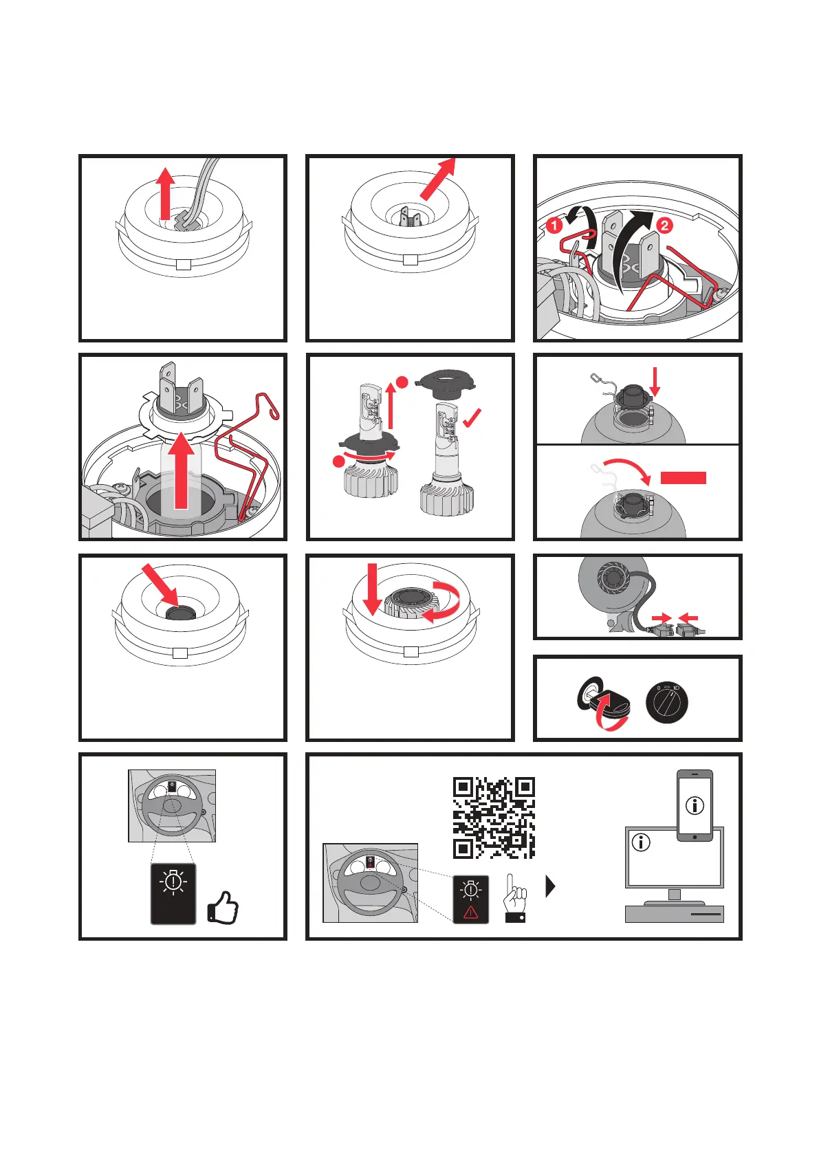 Włóż żarówkę. Obrócić do pozycji końcowej