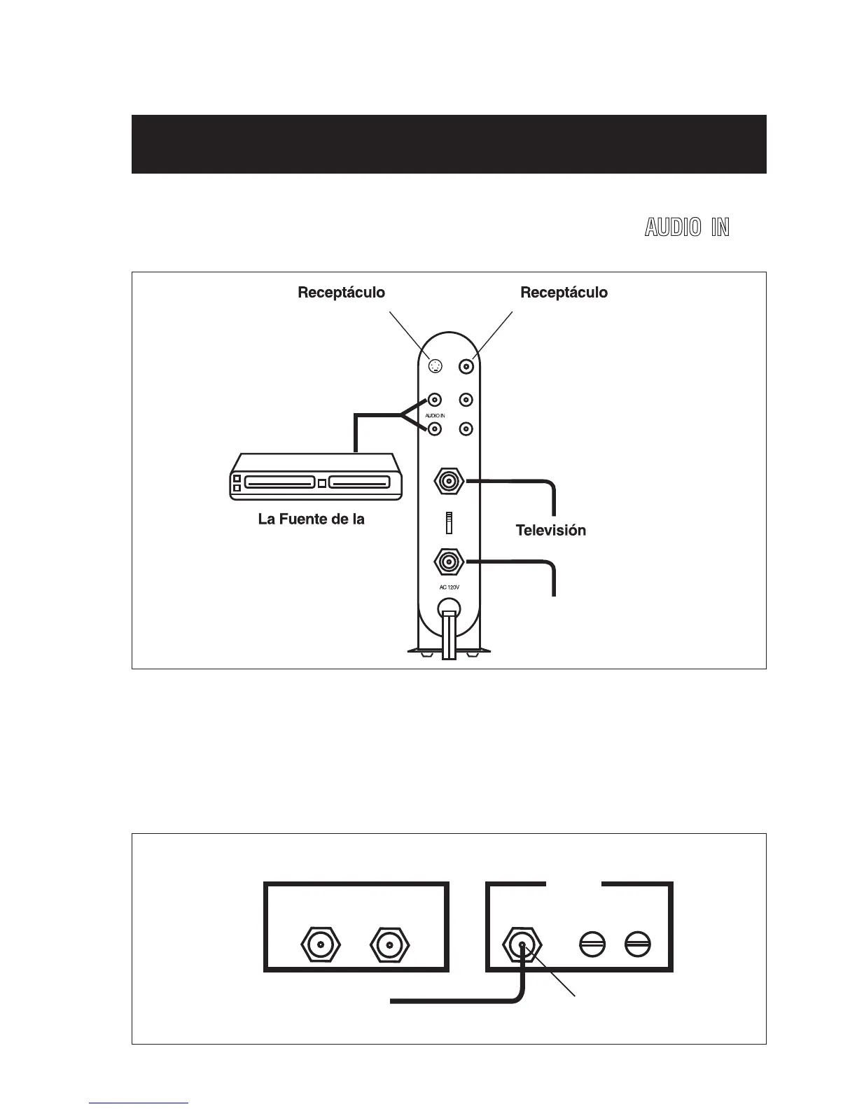 audio de la fuente de vídeo y el receptáculos rotulado