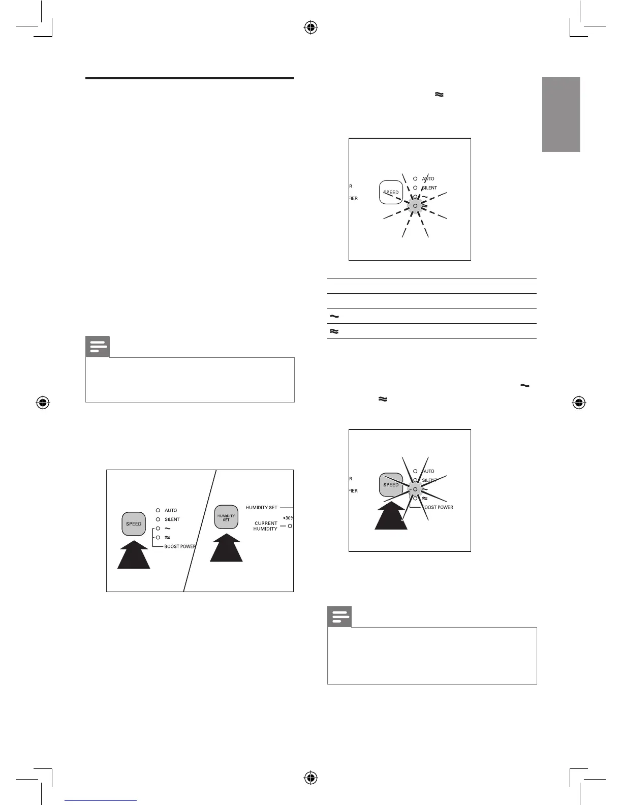 2 Press the SPEED and the HUMIDITY SET