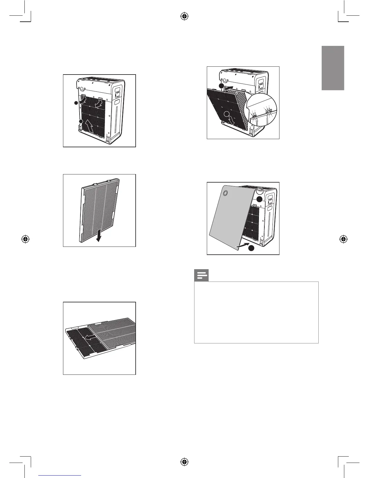 clips down (1) and pull the lter towards