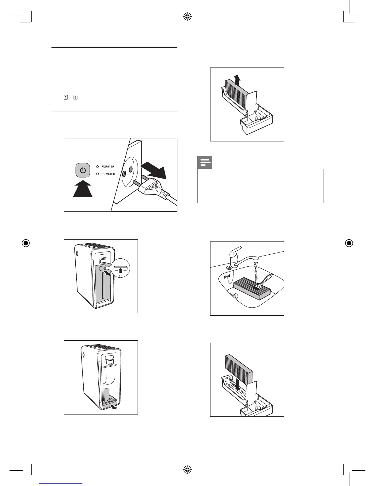 5 Clean the humidication lter gently with