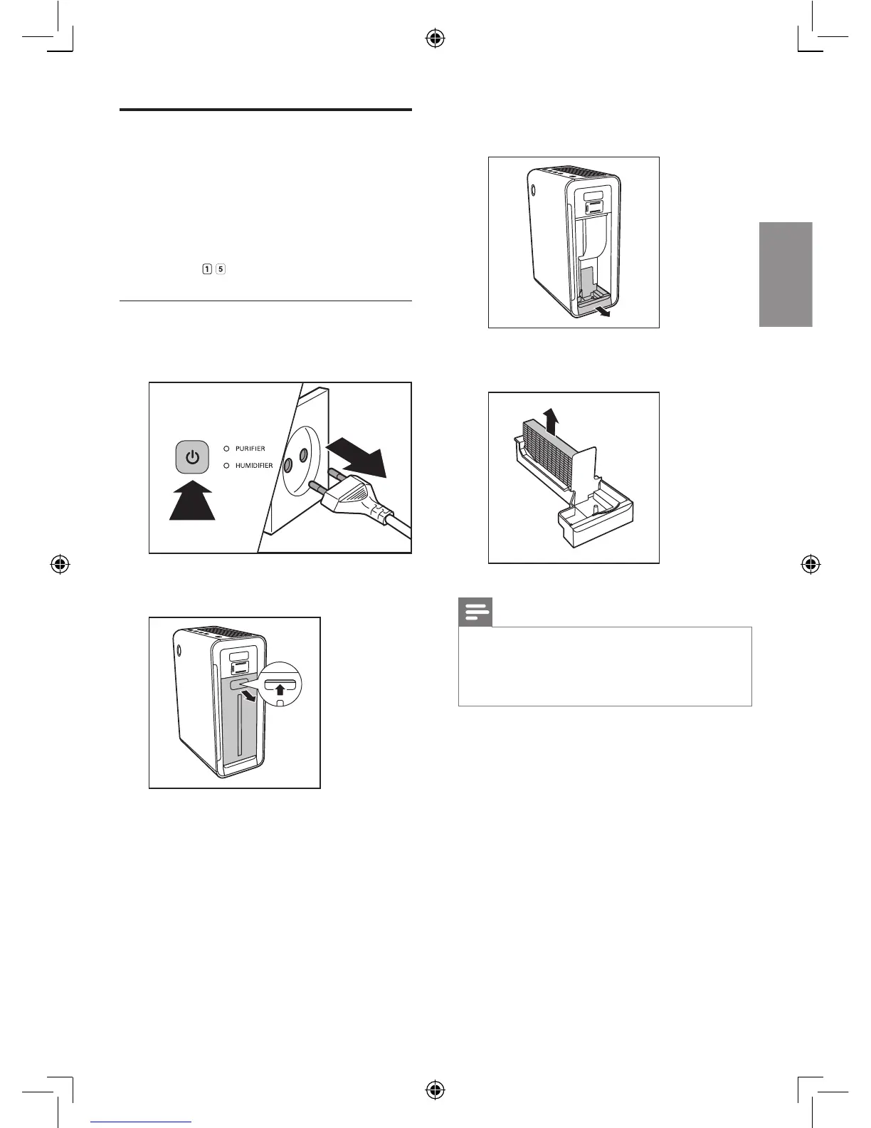 • Bevor Sie den Filtereinsatz des Luftbefeuchters