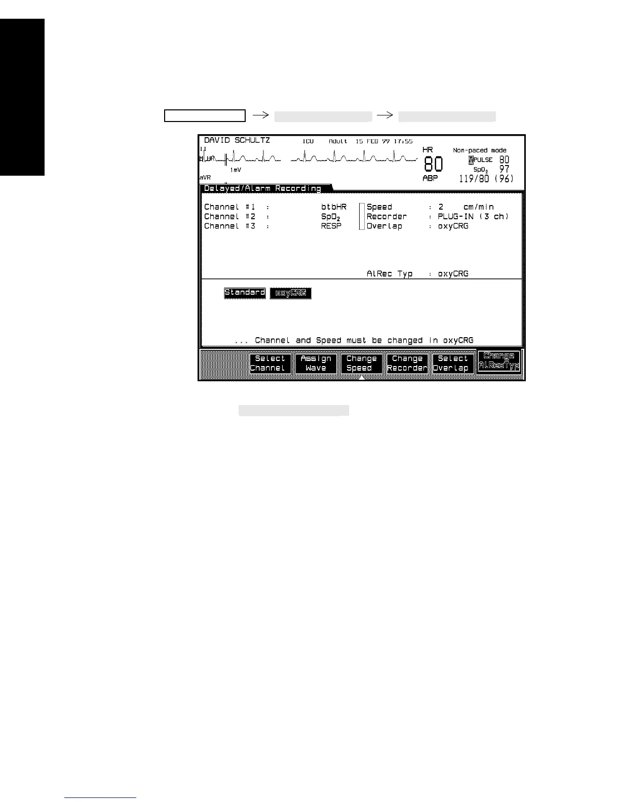 between “Standard” alarm recording or “oxyCRG” alarm recording.
