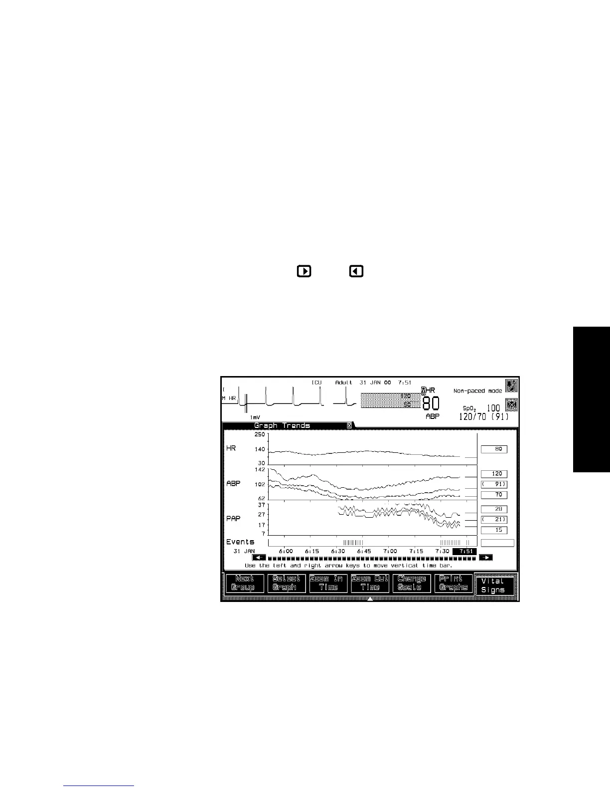 time axis by using the and keys (these keys can be held down