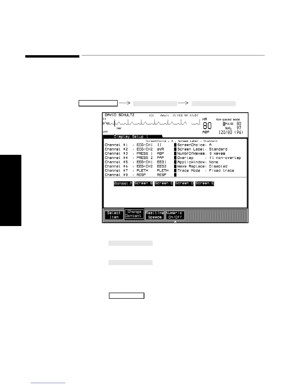 You can switch between the five available screens (A-E) in the Display