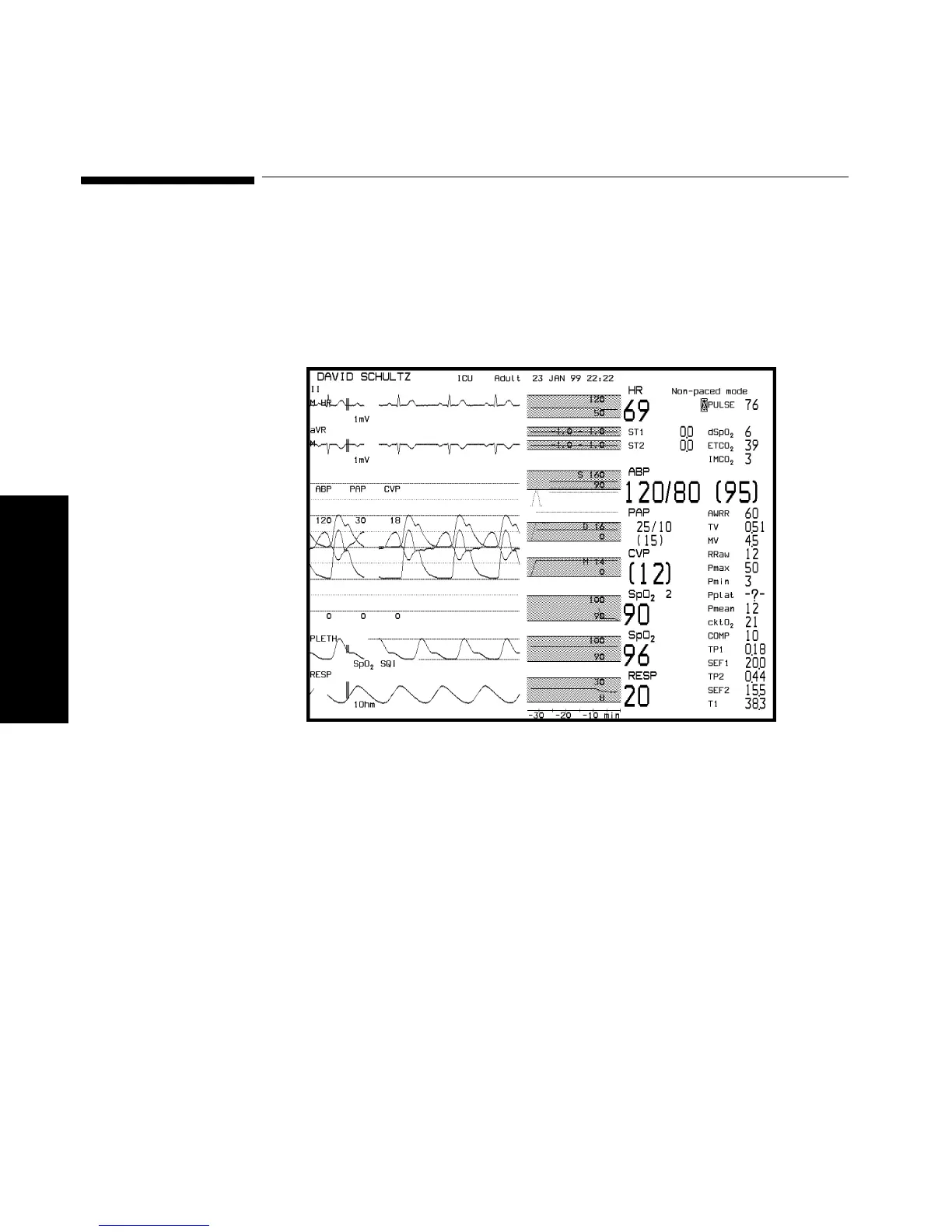 Split Screen trends display the last 30 minutes of the patient's trend data