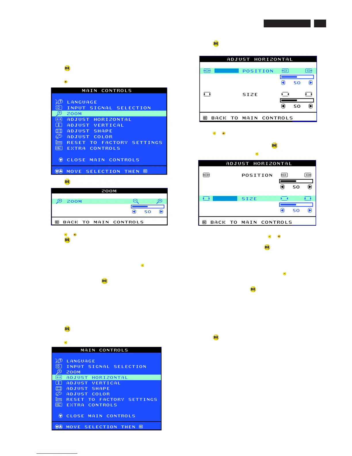 ...tocontinue to ADJUST HORIZONTAL, press the button until