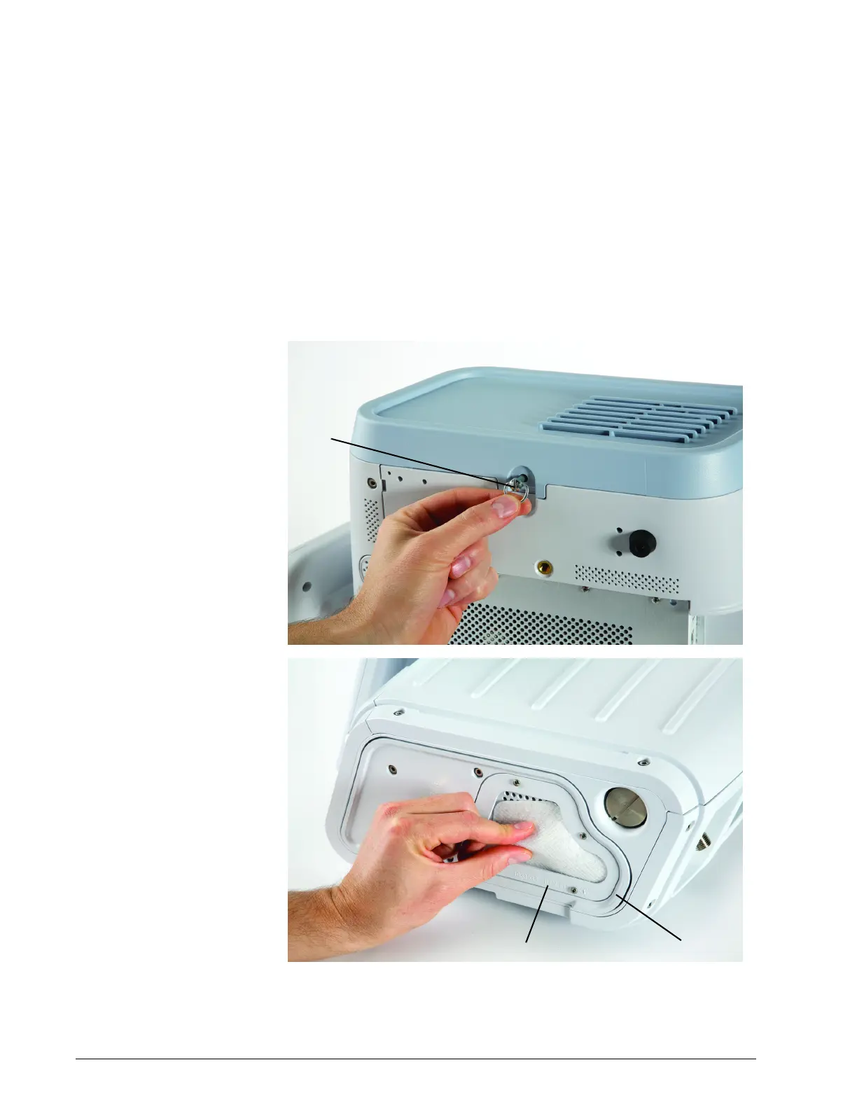 1. Power down the ventilator and disconnect it from AC power. Remove