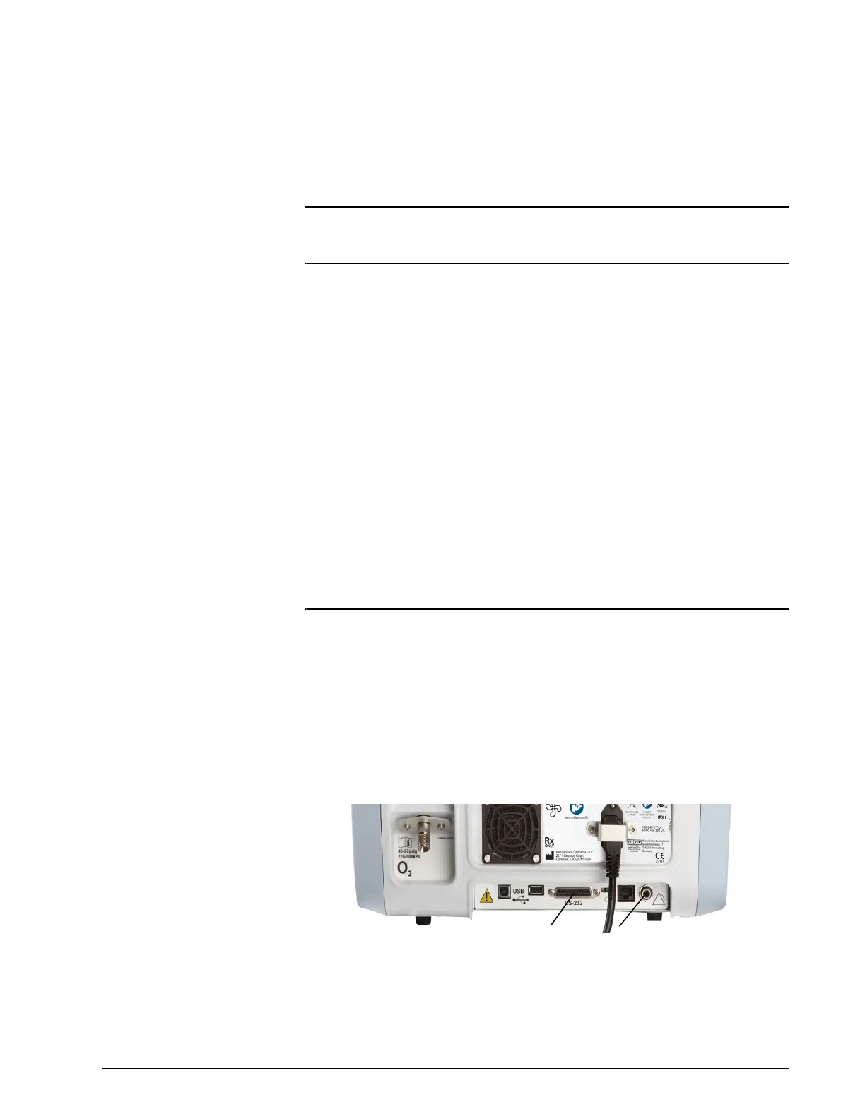 • RS-232 serial port. Through this port the ventilator receives