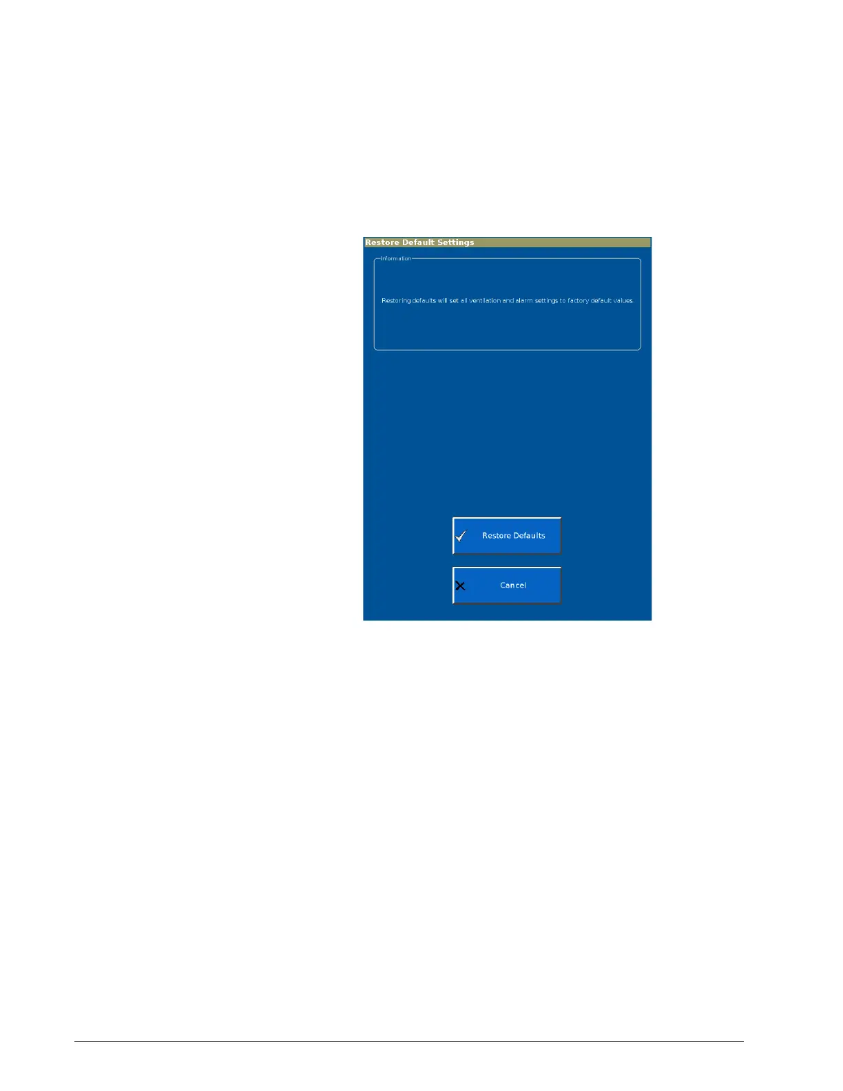 The Restore Default Settings function lets you return ventilator settings to