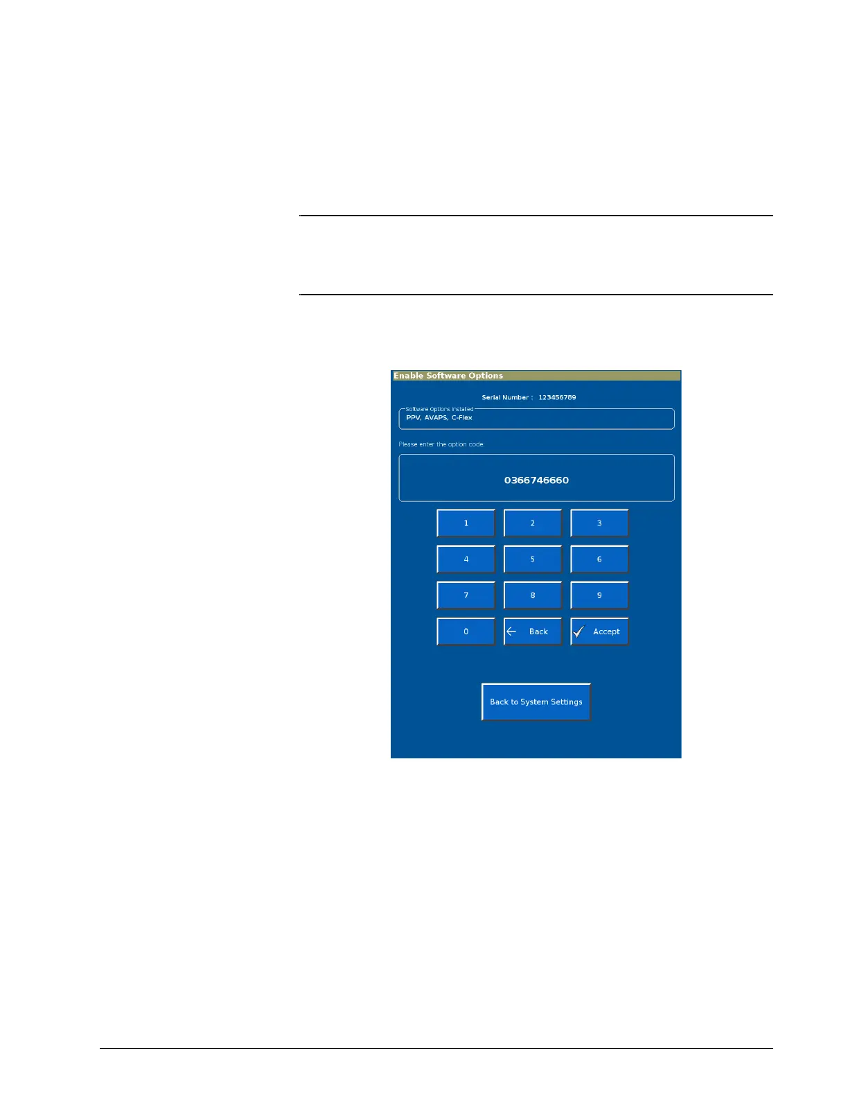 unique code specific to the option and the ventilator serial number. Options