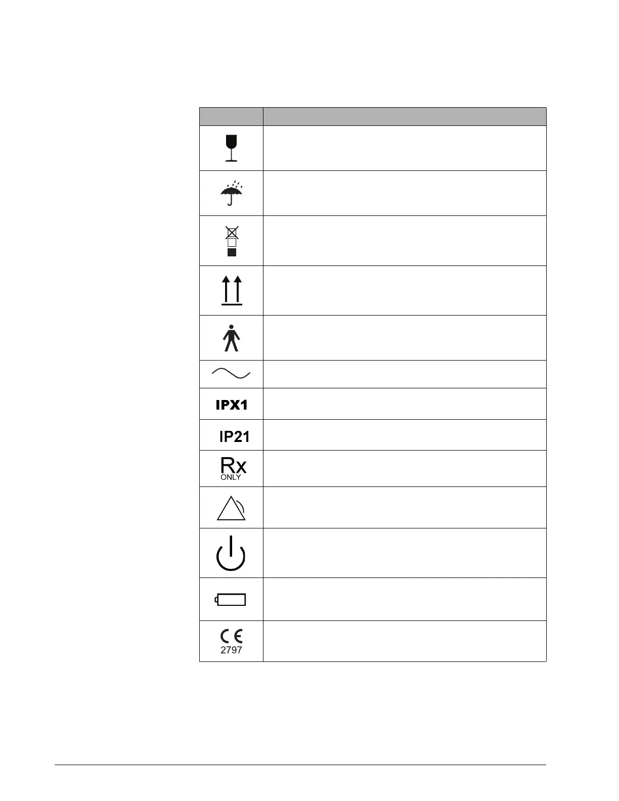 Table 2-1: Symbols used on ventilator labels, battery, and packaging
