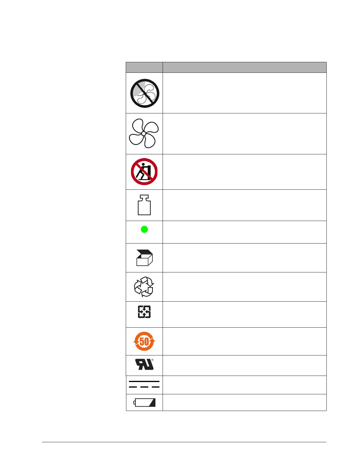 symbol to indicate “Do not block the cooling fan Inlet.”
