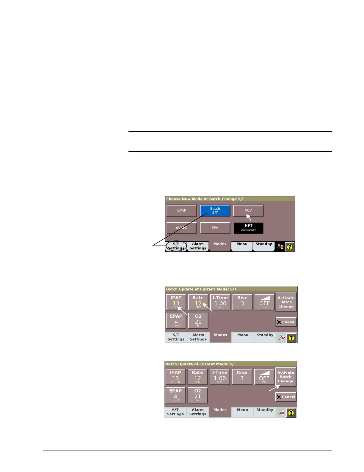 This process applies to ventilation settings only, not to alarm settings.