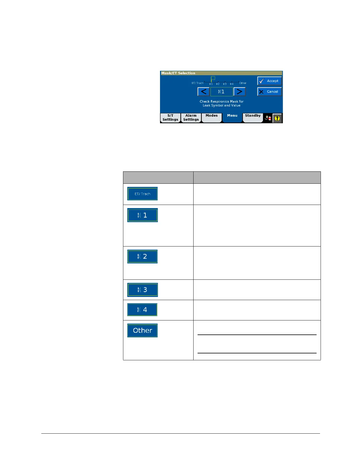 3. Select the desired mask/patient interface type (Table 6-1). Select