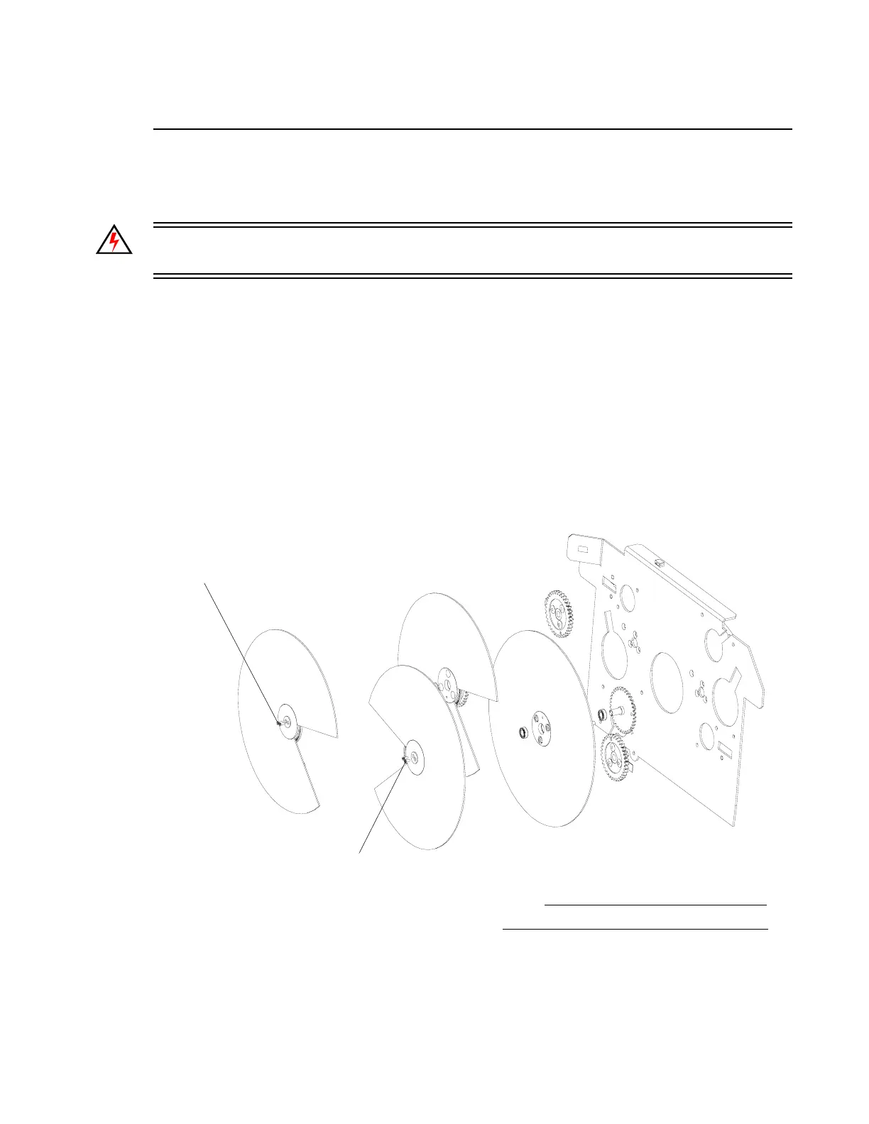 Step 2. At yellow wheel, remove two 0-80 x 3/16" PFSS Screws holding yellow wheel to shaft and