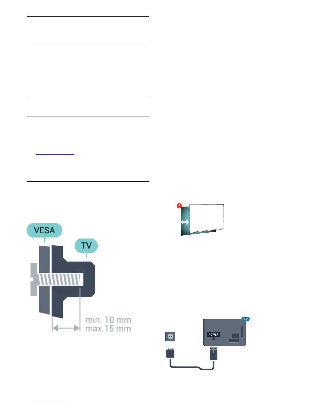 • Placer TV'et højst 15 cm fra væggen.