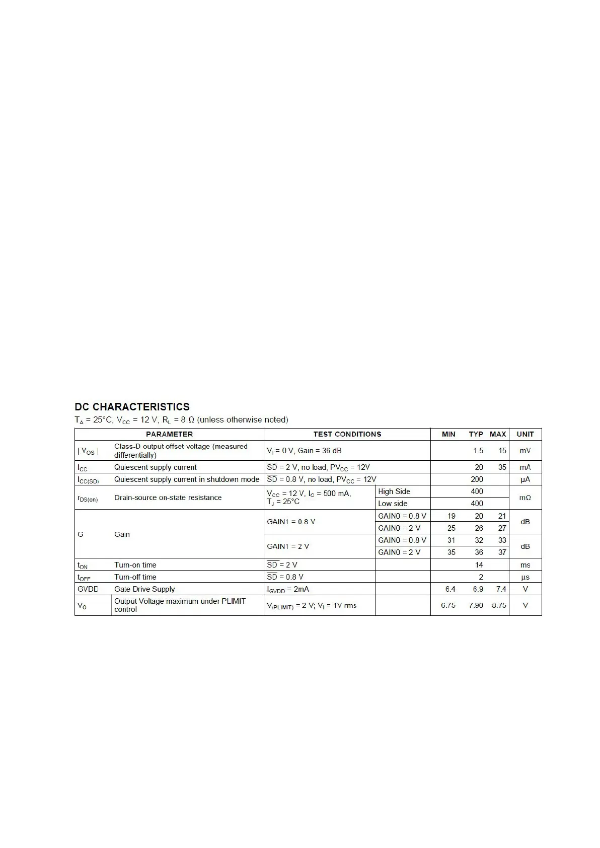 • 6 W/ch into an 8-Ω Loads at 10% THD+N From a 10-V Supply