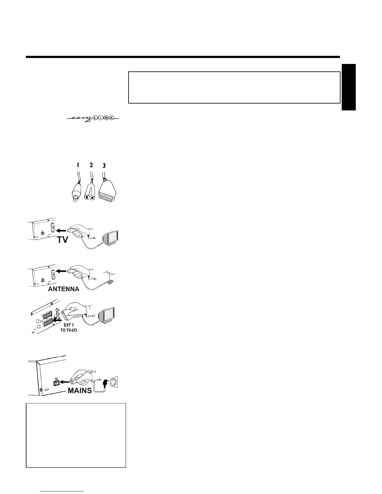 4 Plug in a special scart cable (for Easylink) into the scart socket EXT 1